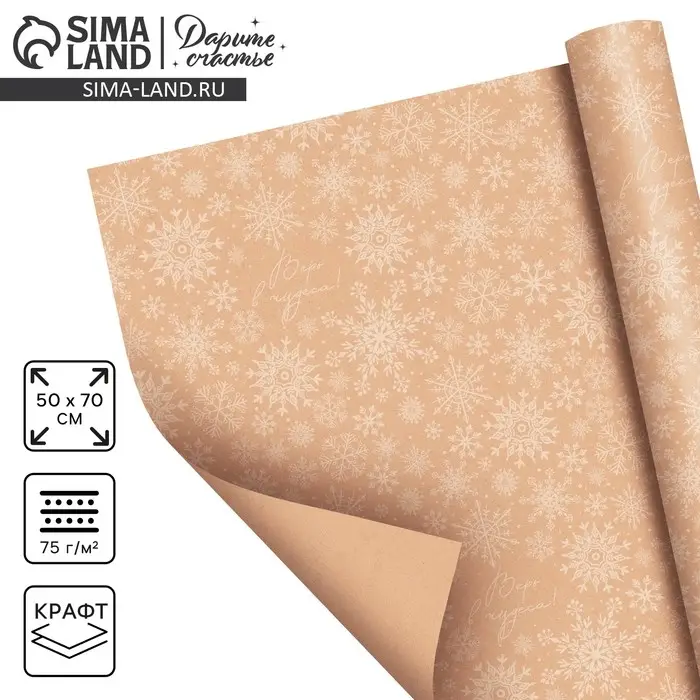 Бумага упаковочная крафтовая «Снегопад», 50 х 70 см
