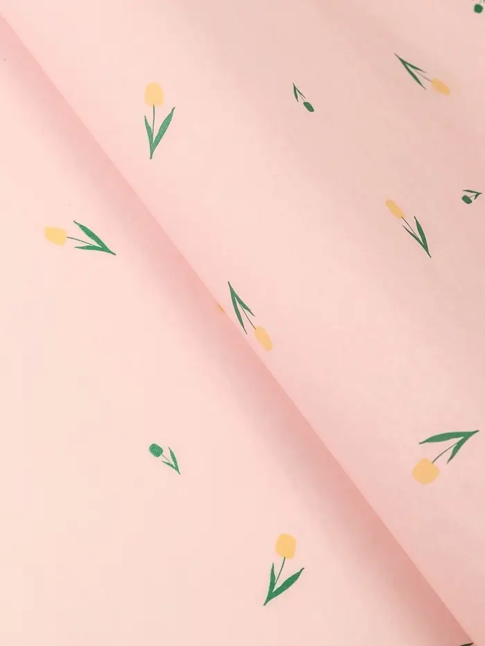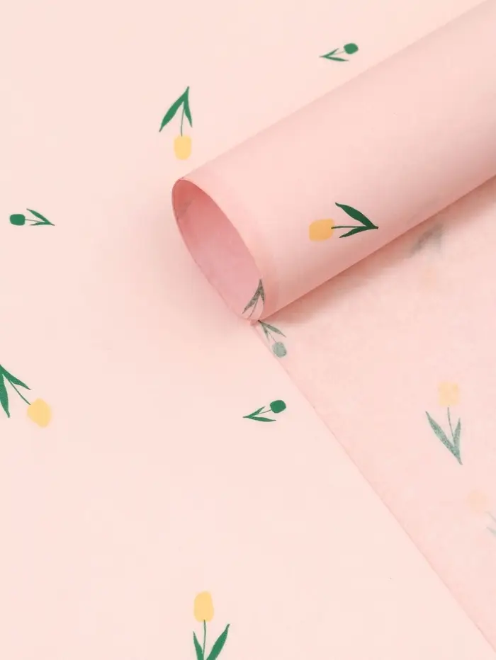 Бумага упаковочная тишью, «Цветы», розовый, 50 см × 70 см 17 грамм