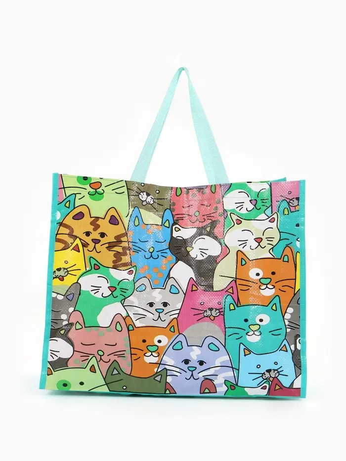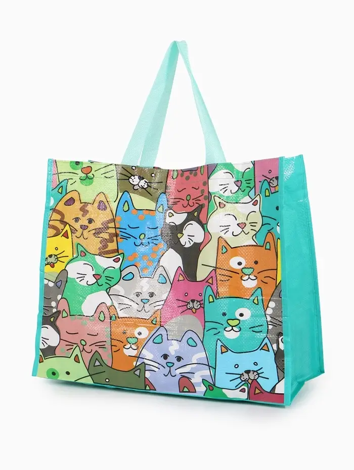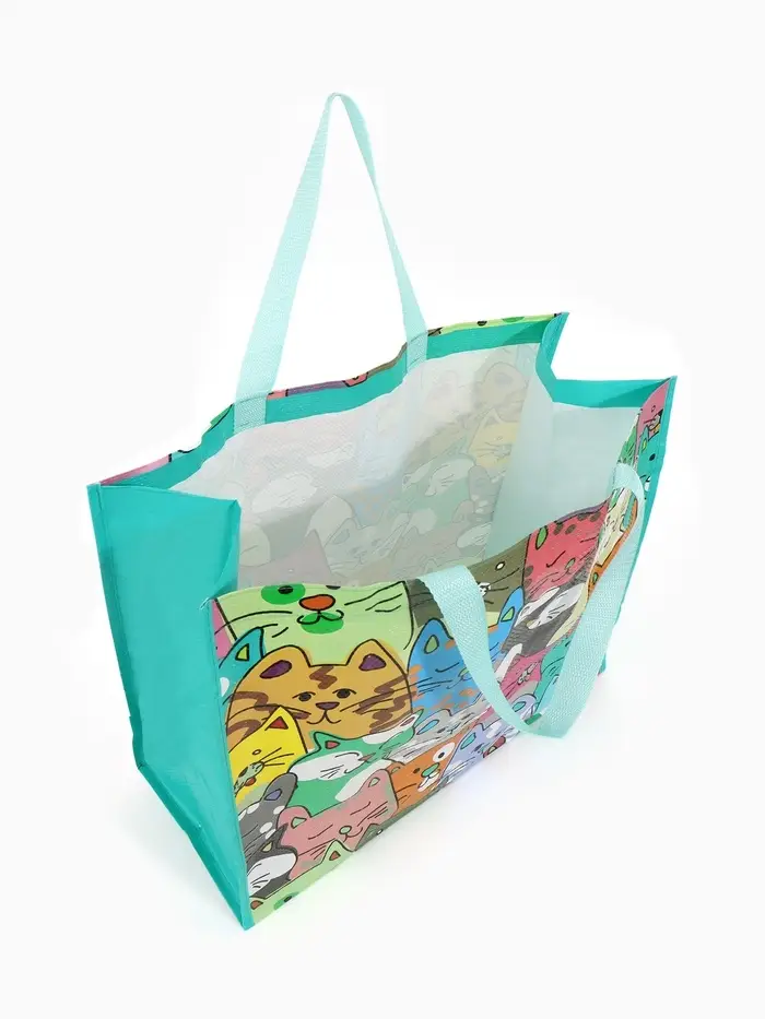 Сумка хоз Котики, 45*20*37, отдел без молнии, зеленый