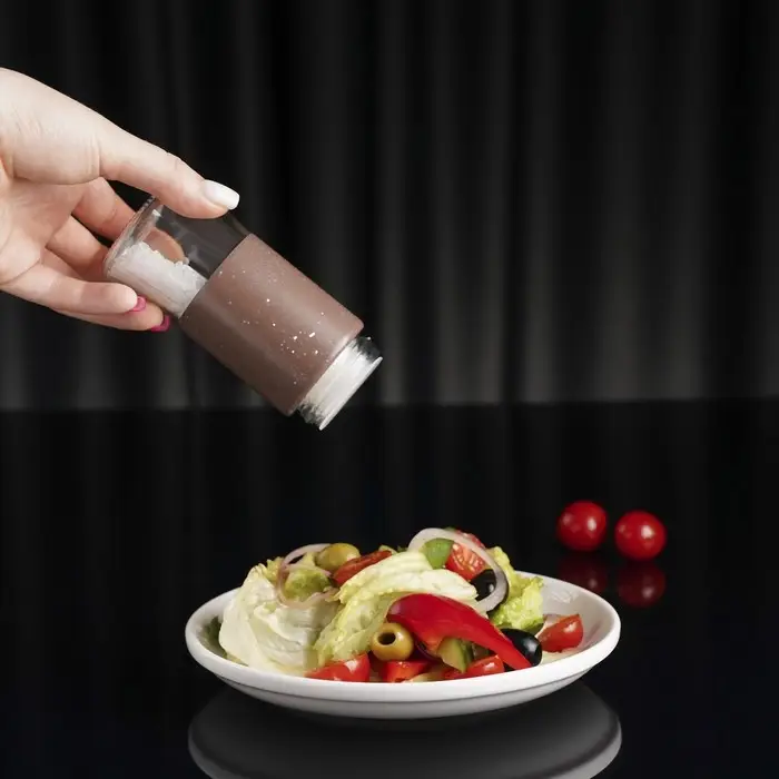Эта удобная и лаконичная солонка отлично подойдет для сервировки стола. Наполнить ёмкость можно через горлышко, которое откручивается.