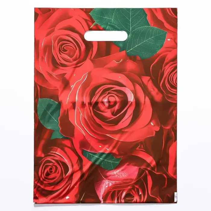 Пакет «Алые розы», полиэтиленовый с вырубной ручкой, 30×40 см, 50 мкм