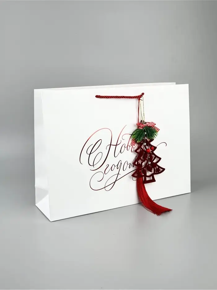 Пакет подарочный «Новогодний», с бубенчиками и кисточкой, 40 × 31 × 11 см
