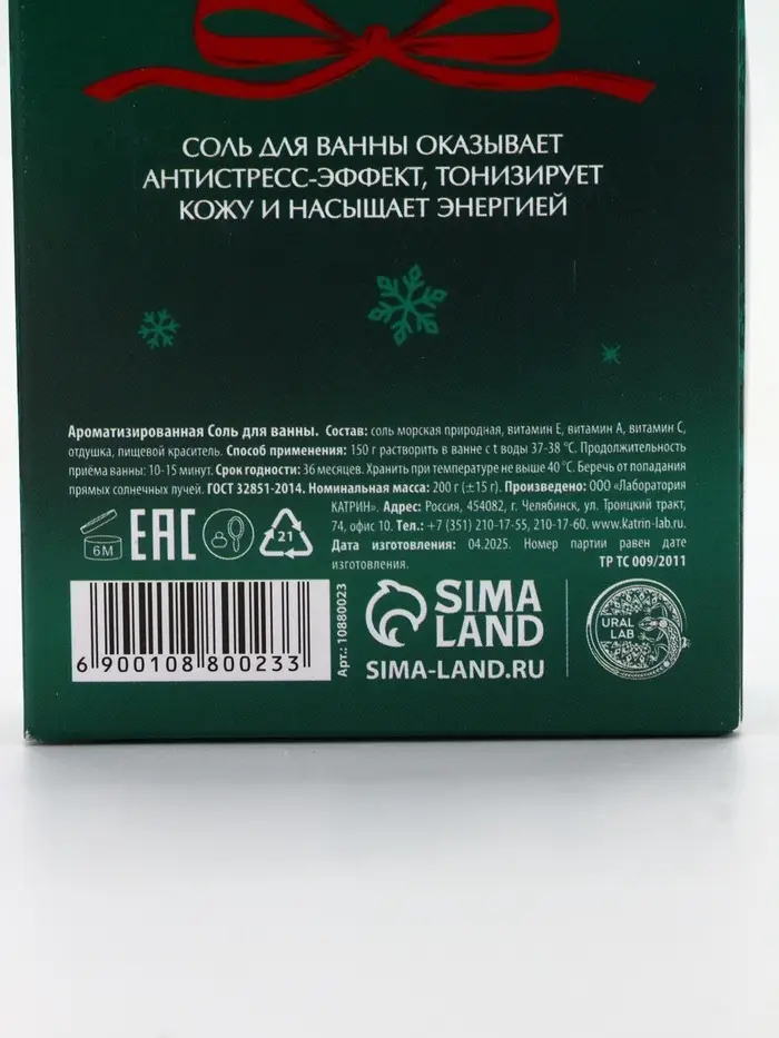 Соль для ванны, аромат яблочный пунш, 200 г, URAL LAB