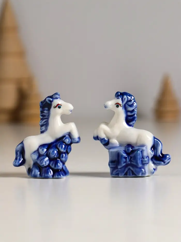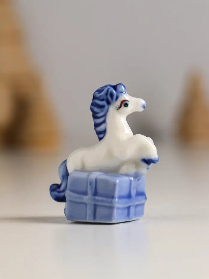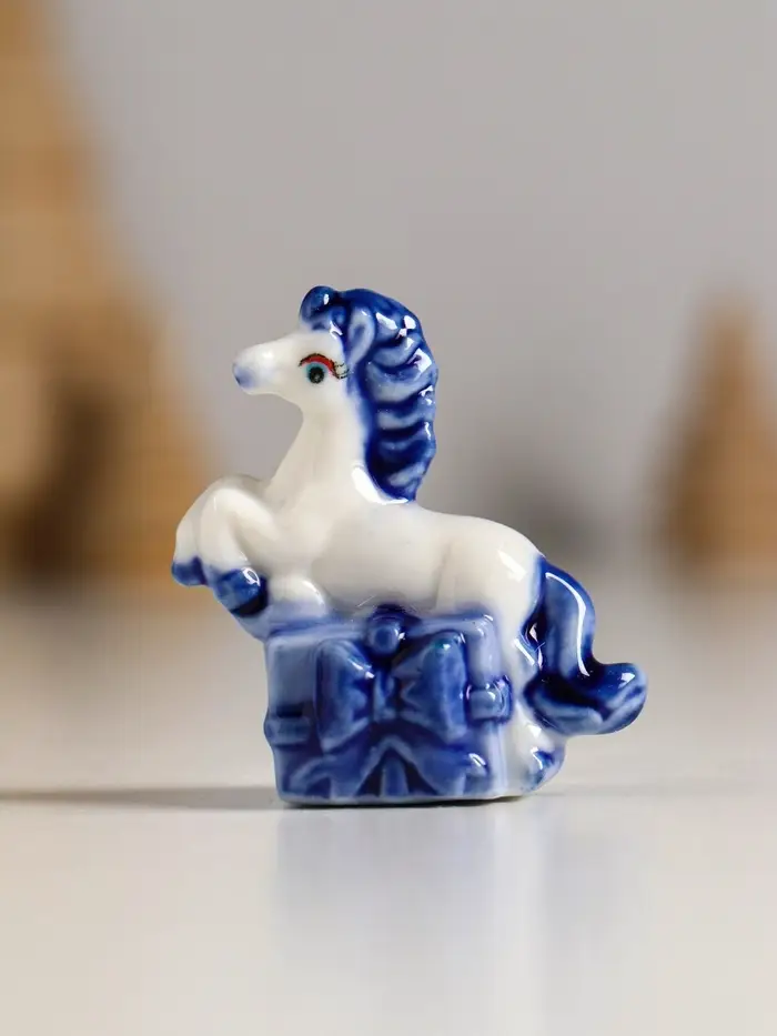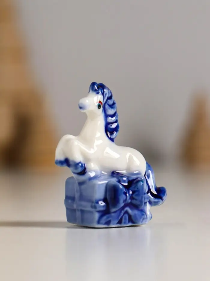 Сувенир керамика "Лошадка с подарком" бело-синий МИКС 4,1х2,6х4 см