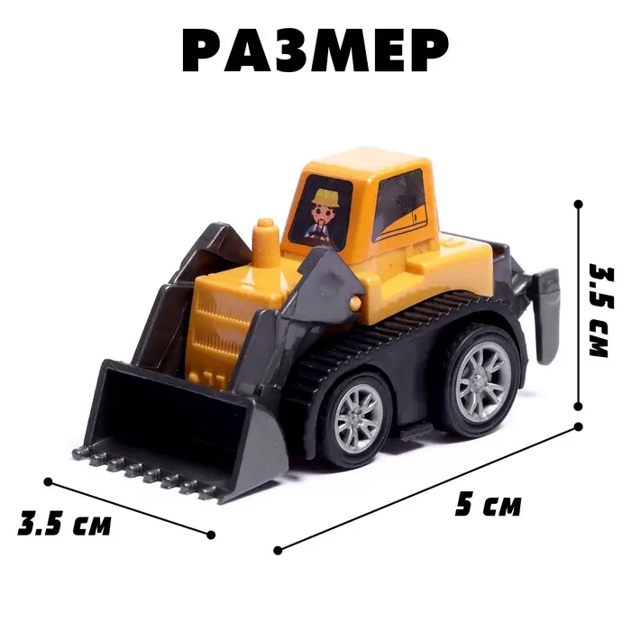 Инерционная машинка «Строитель» — это яркая игрушка для маленьких любителей строительной техники. Каждая машинка оснащена инерционным механизмом: достаточно немного оттянуть её назад, отпустить, и она поедет вперёд.