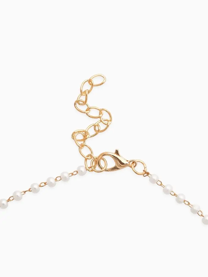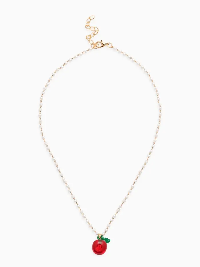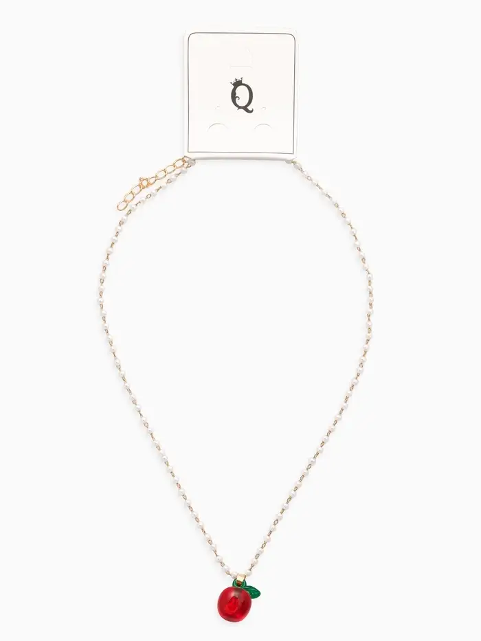 Кулон на жемчужной дорожке "Яблочко", цвет бело-красный в золоте 44+удл.