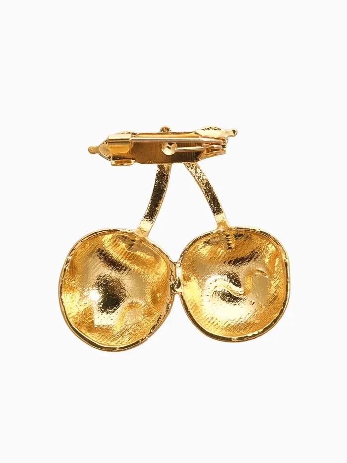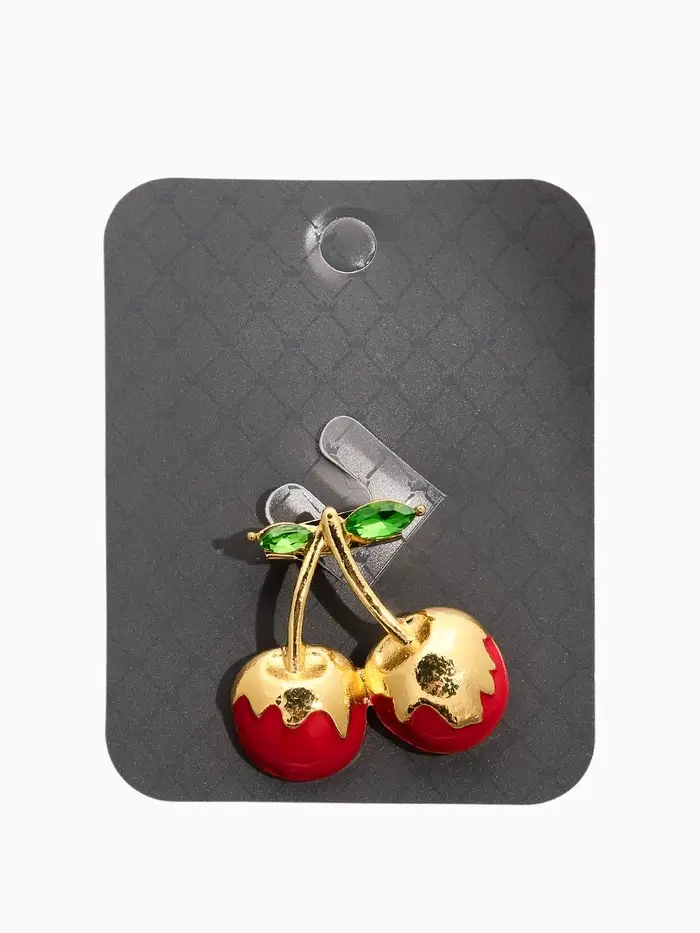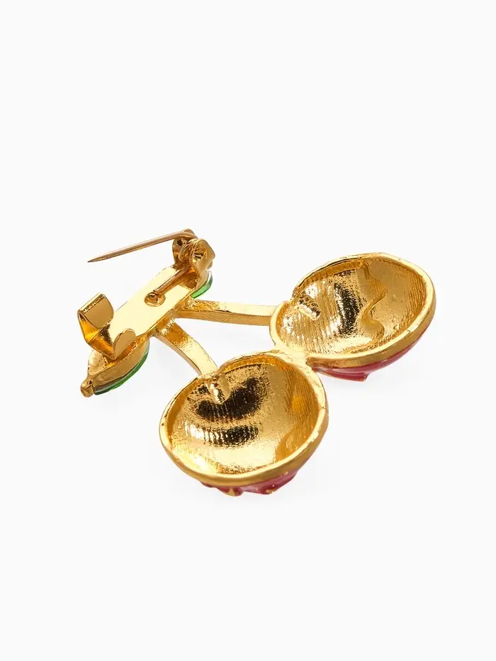 Брошь "Вишня заливная", цвет красно-зелёный в золоте
