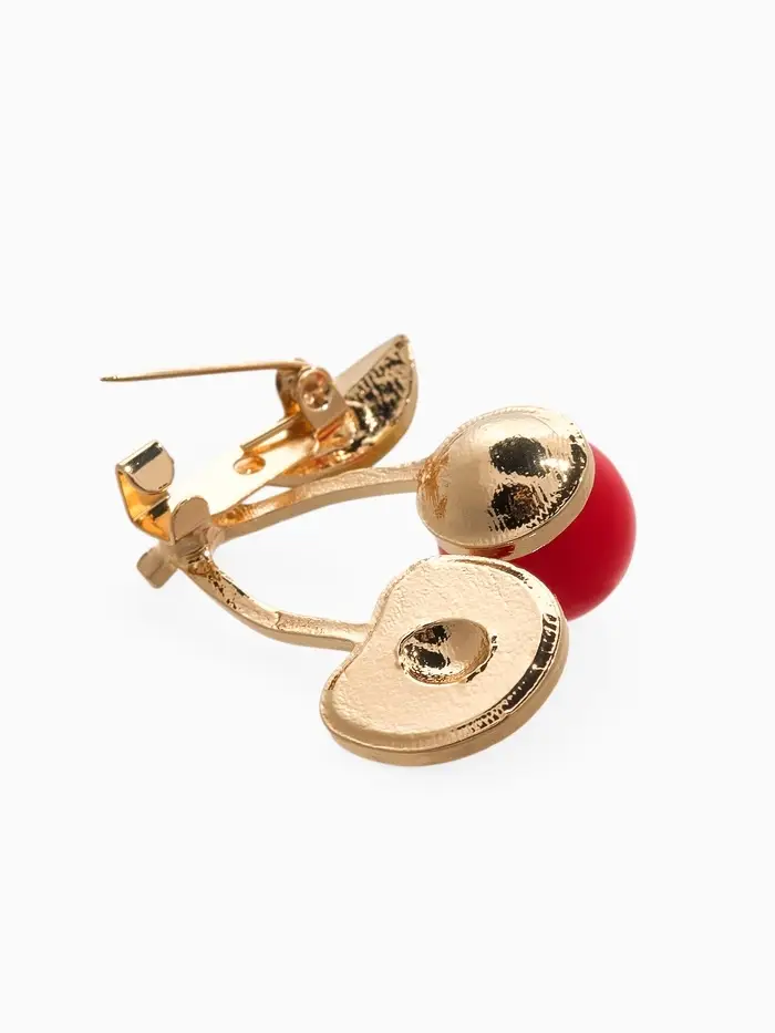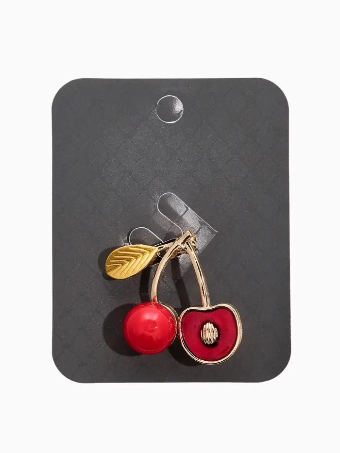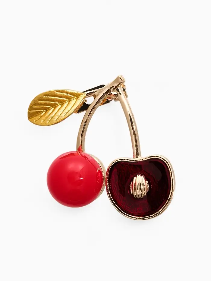 Брошь "Вишня с косточкой", цвет красно-зелёный в золоте