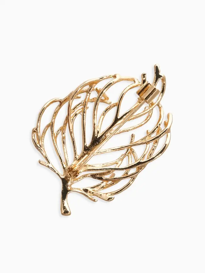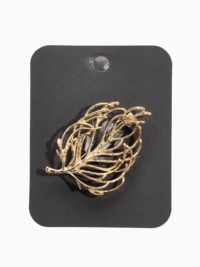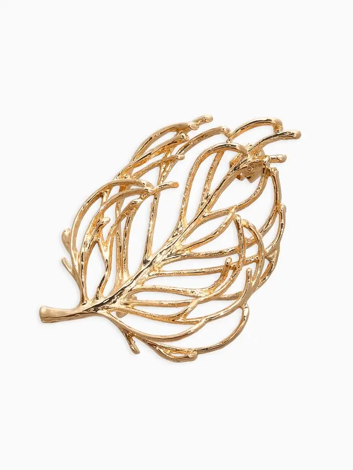 Брошь "Лист" веточка, цвет золото