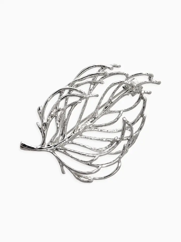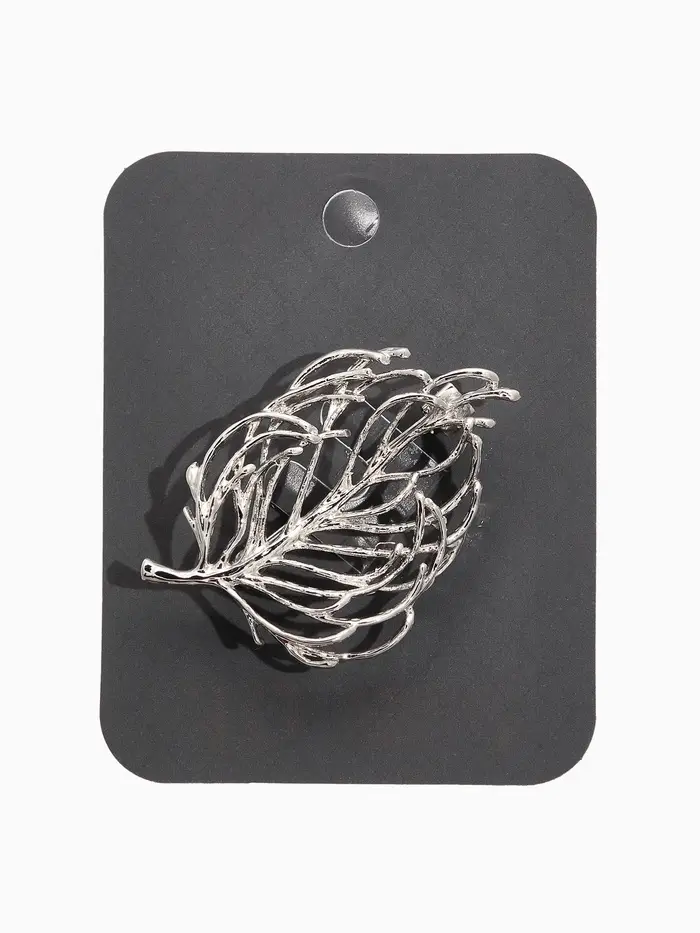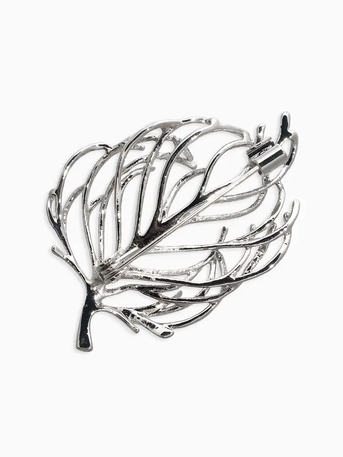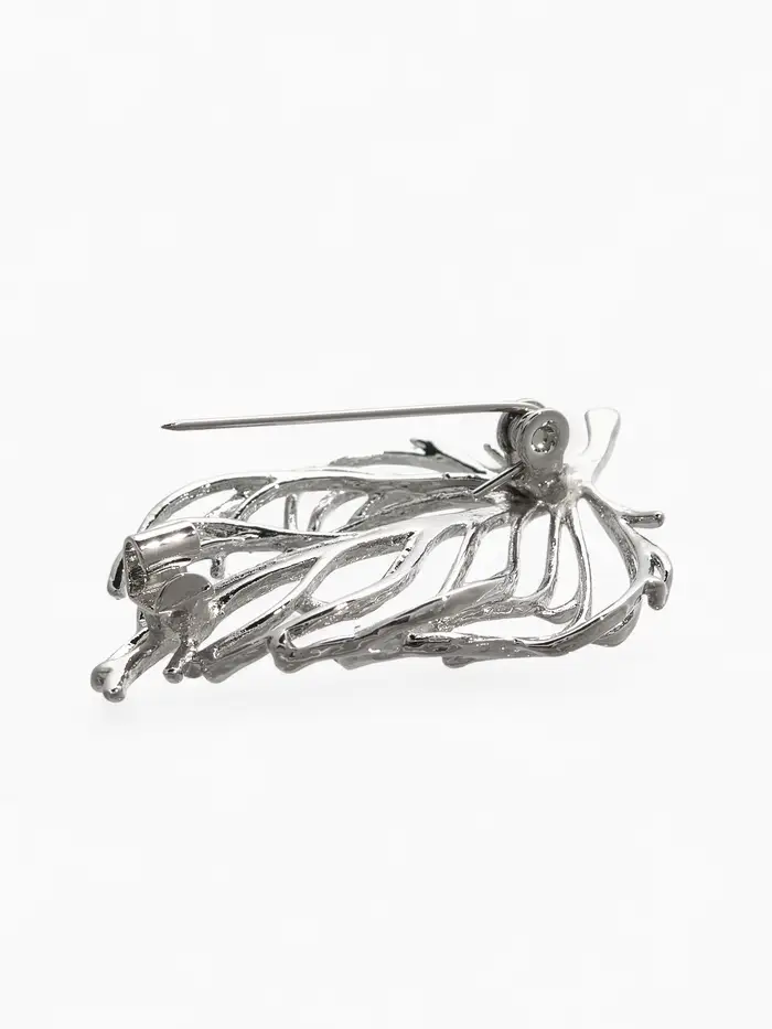 Брошь "Лист" веточка, цвет серебро