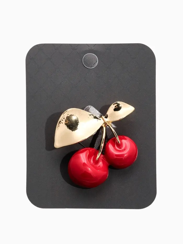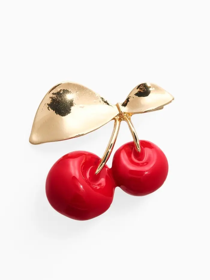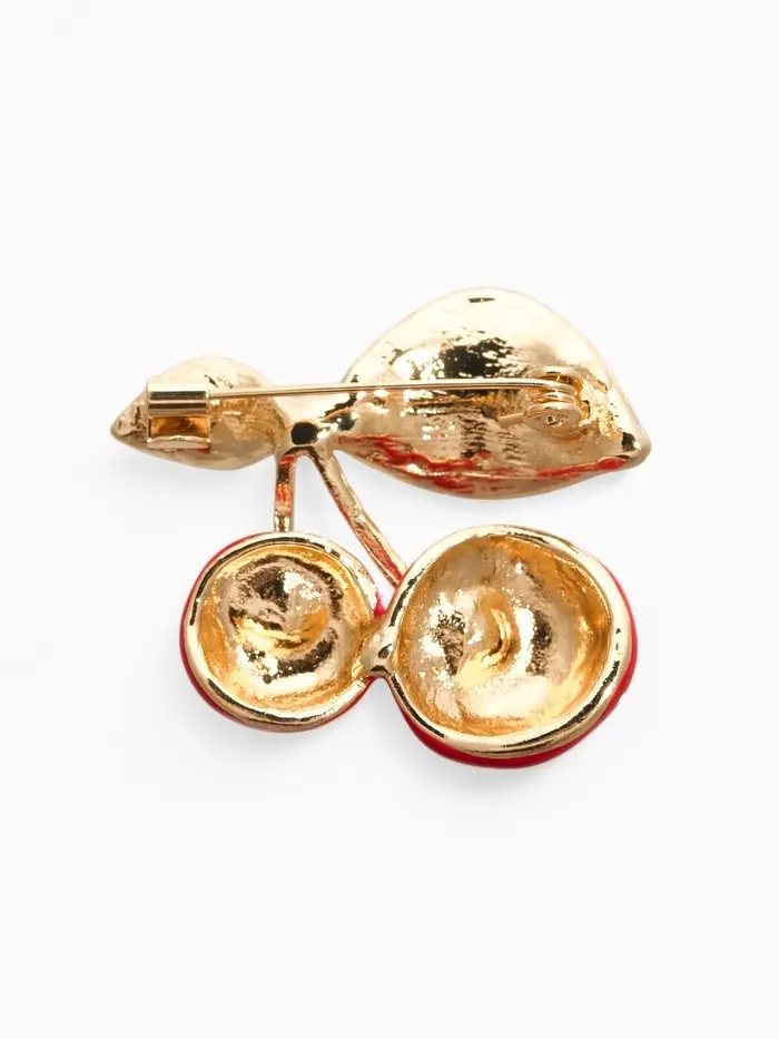 Брошь "Вишня с листочками", цвет красный в золоте