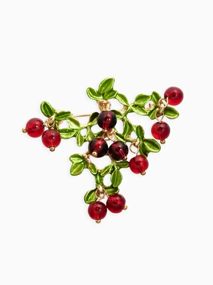 Брошь "Куст Вишни", цвет бордово-зелёный в золоте