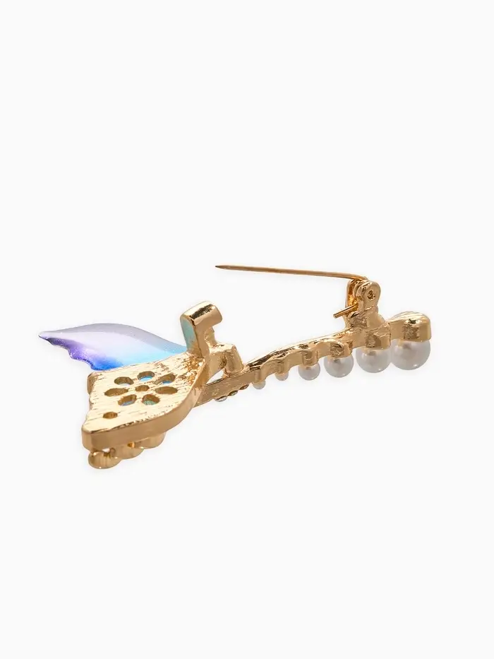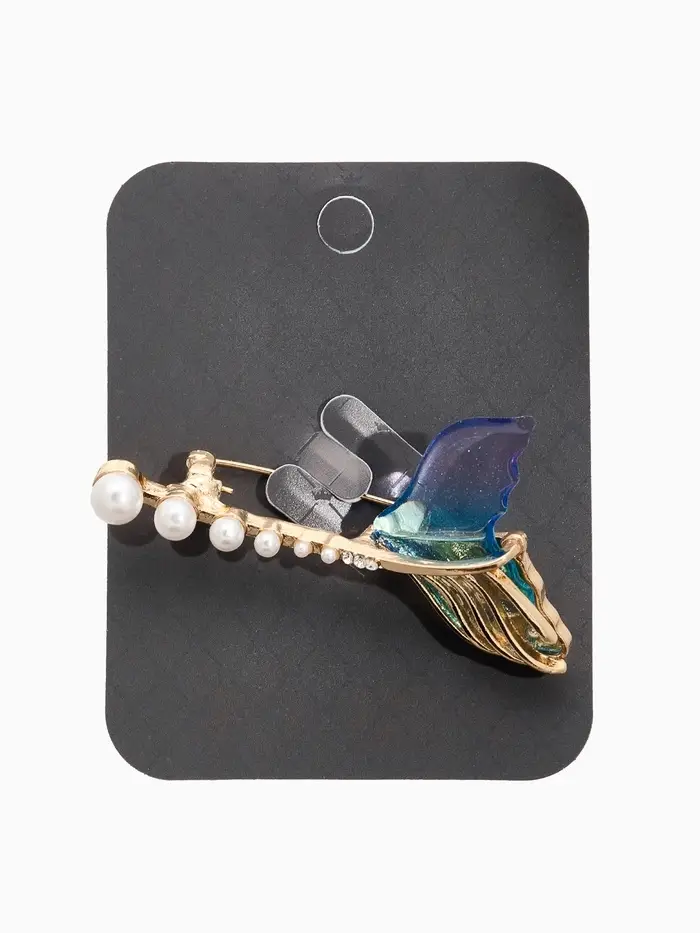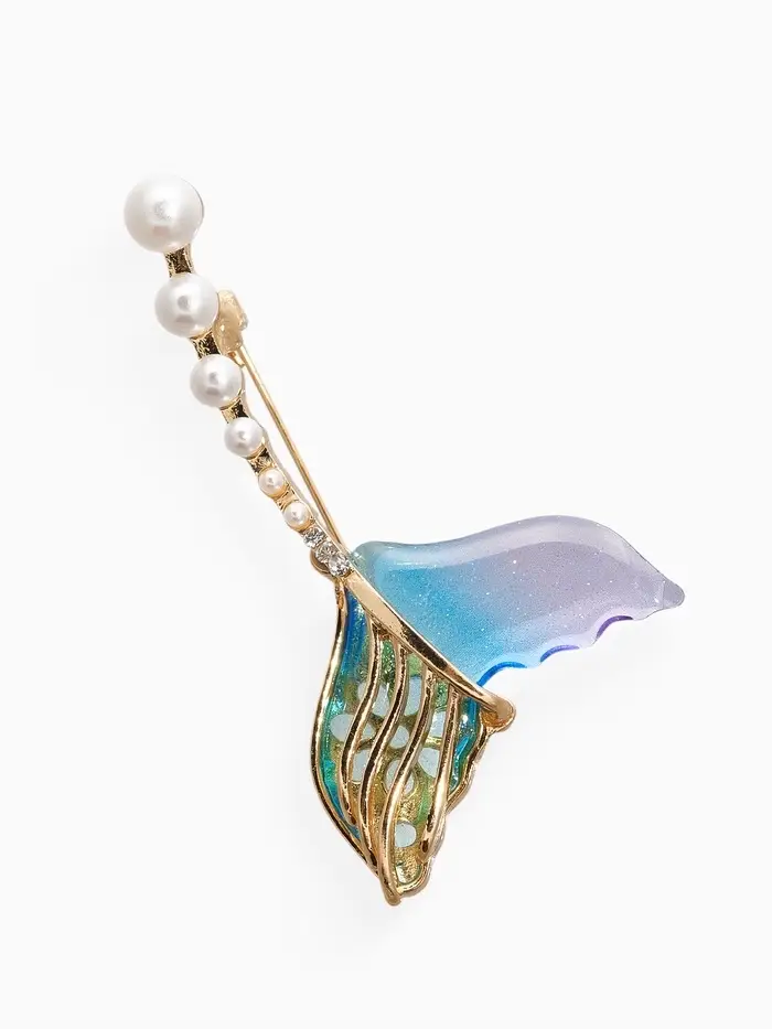 Брошь "Хвост Русалки" с жемчугом, цветная в золоте