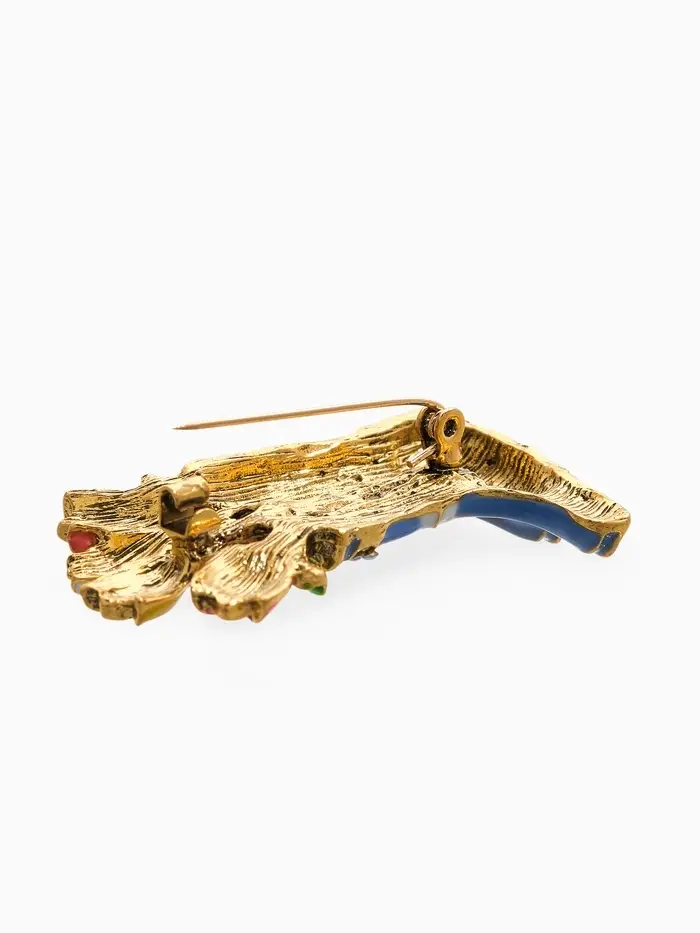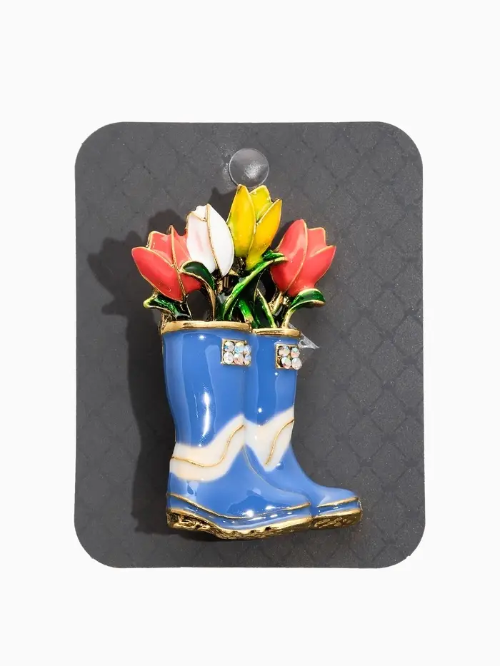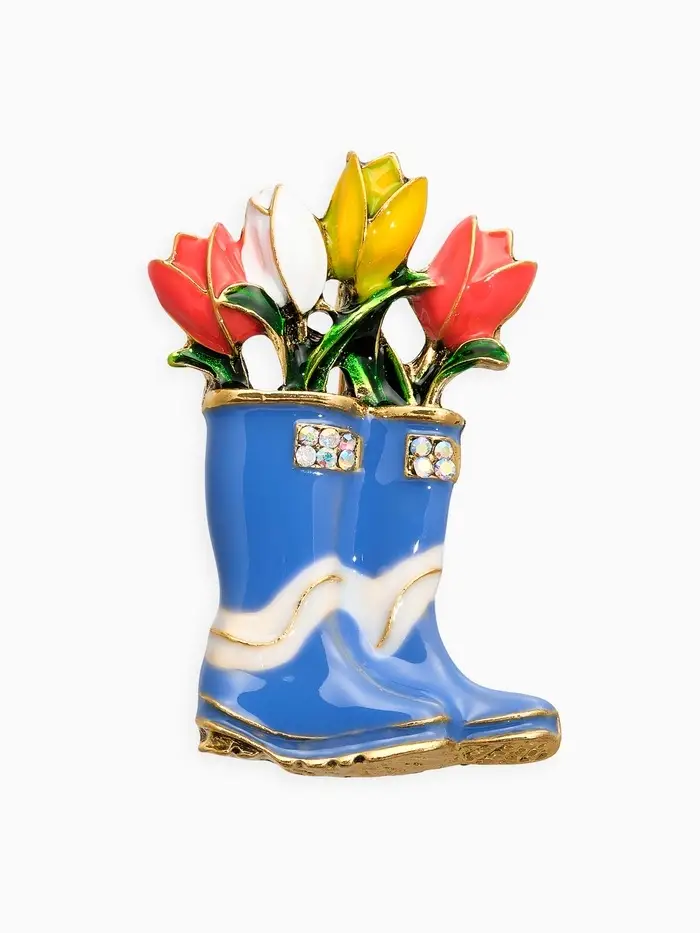 Брошь "Цветы Тюльпанов в Сапогах", цветная в чернёном золоте