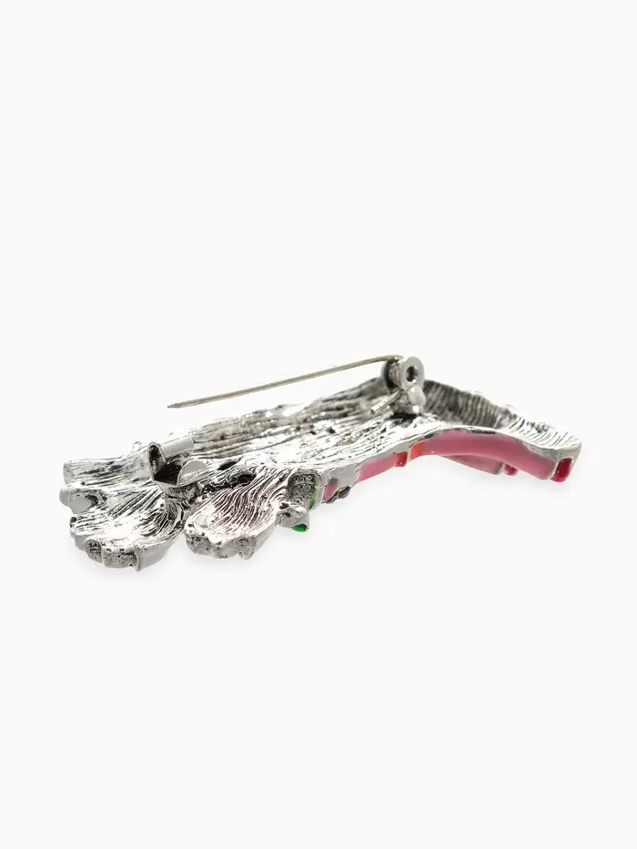 Брошь "Цветы Тюльпанов в Сапогах", цвет бело-розовый в серебре