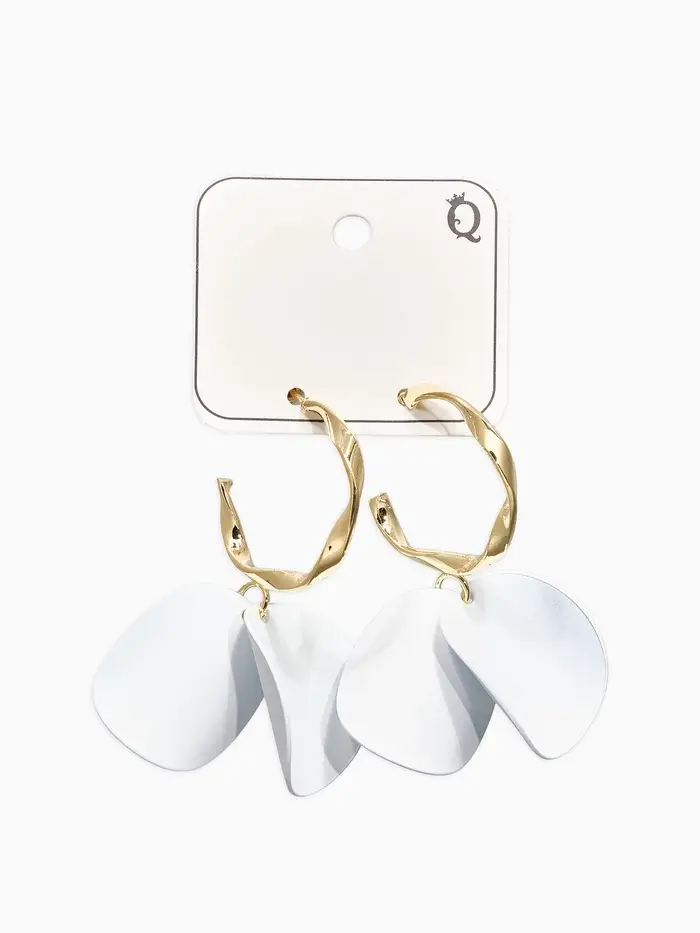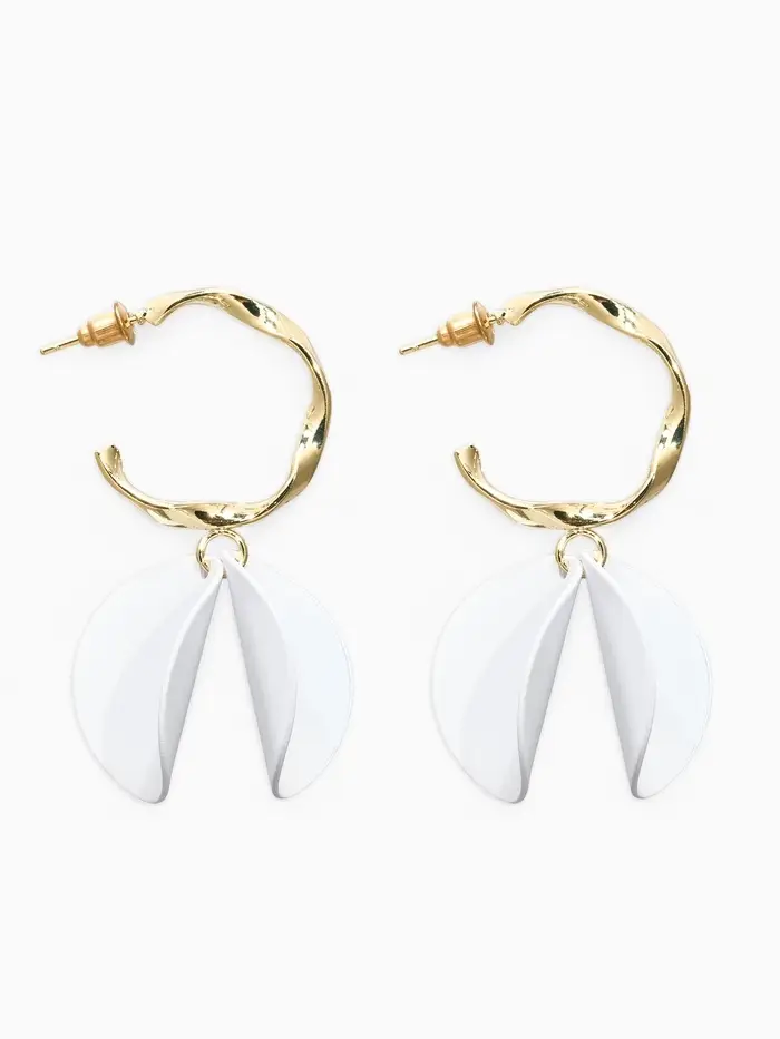 Серьги "Лепесточки на кольце", цвет белый в золоте