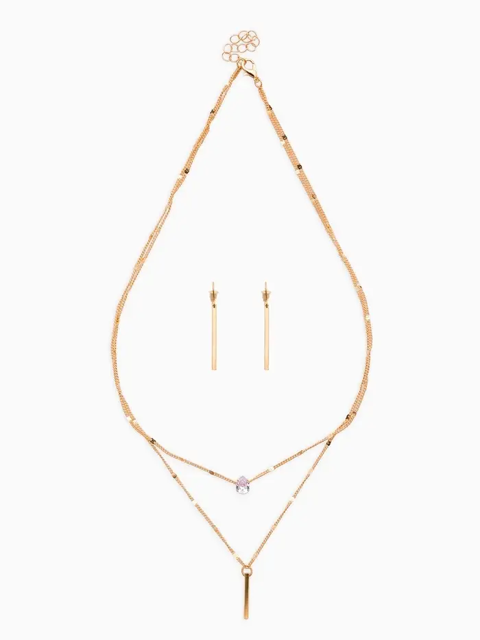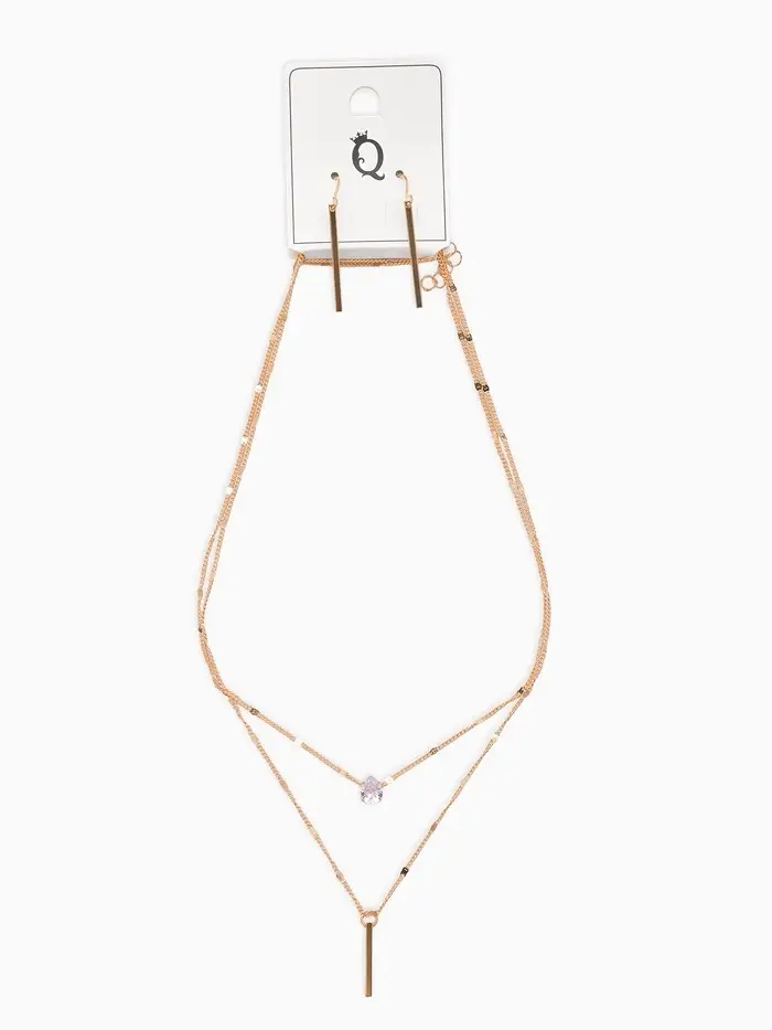 Набор 2 пред-та: серьги, колье "Минимализм", 45/55см, цвет белый в золоте
