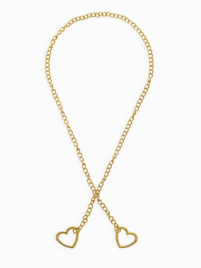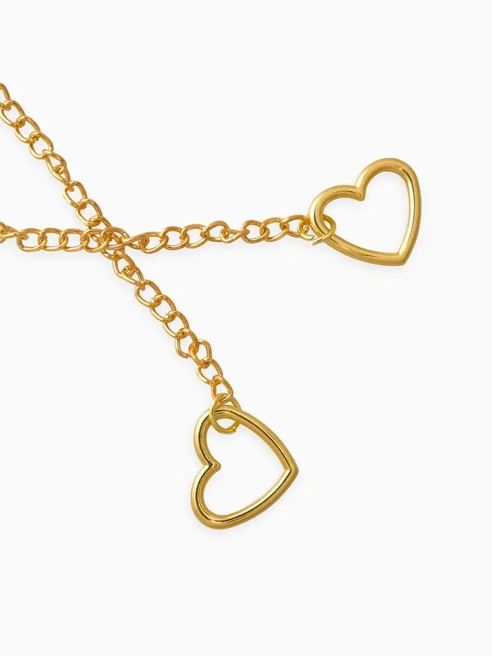 Цепочка на шею два сердца, затяжка, цвет золото