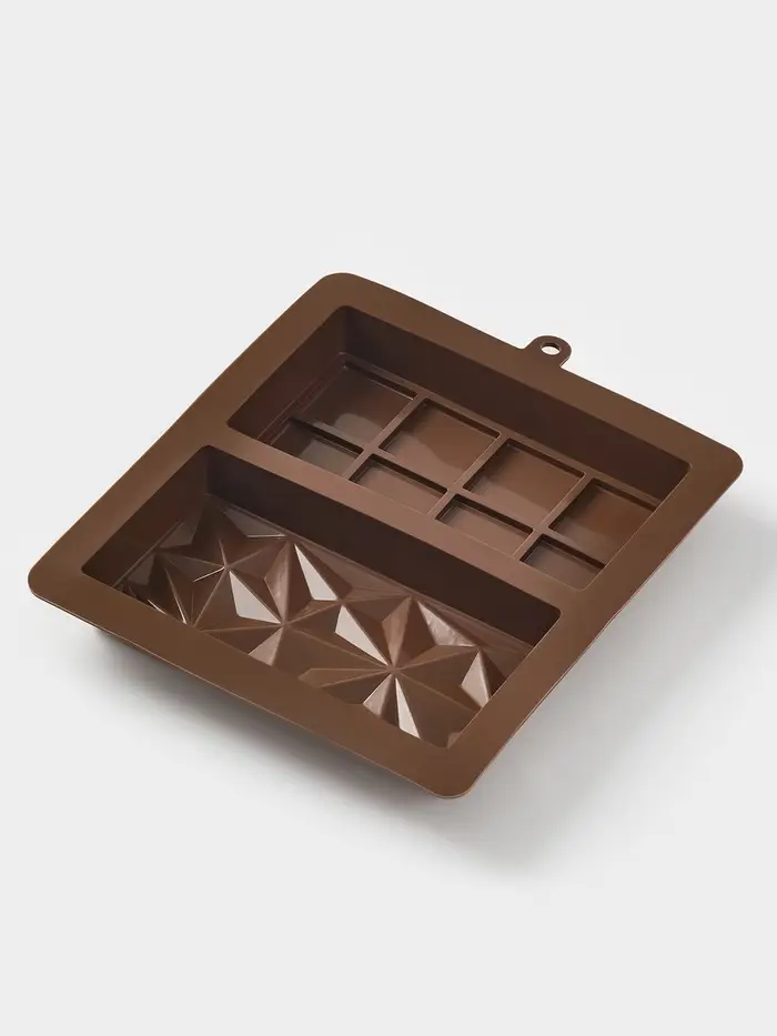 Форма для дубайского шоколада 2 плитки "Квадраты, пирамиды" 21x19x2,5 см