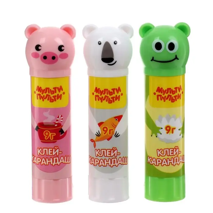 - Забавный колпачок в форме животного неудержимо привлекает внимание и превращает процесс склеивания в игру.
