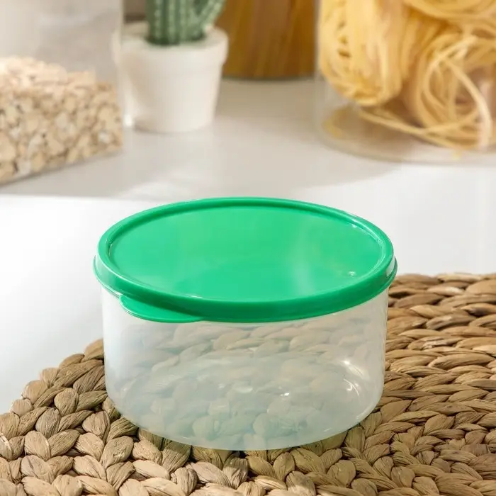 Контейнер круглый Доляна, пищевой, 500 мл, прозрачный, крышка зелёная