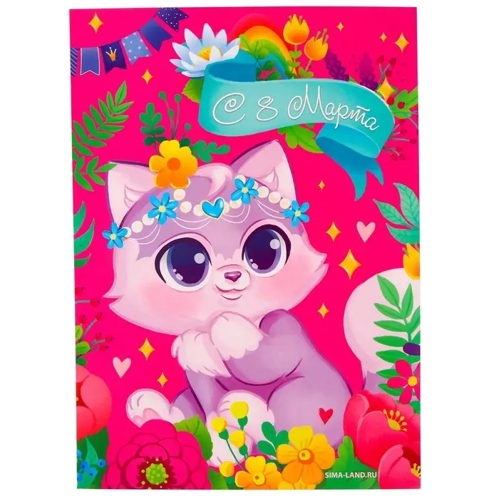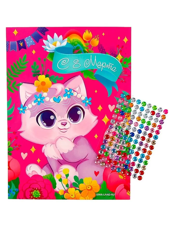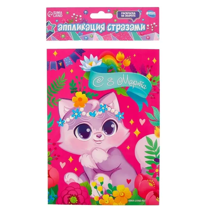 Аппликация стразами для детей «Котик. 8 марта», набор для творчества