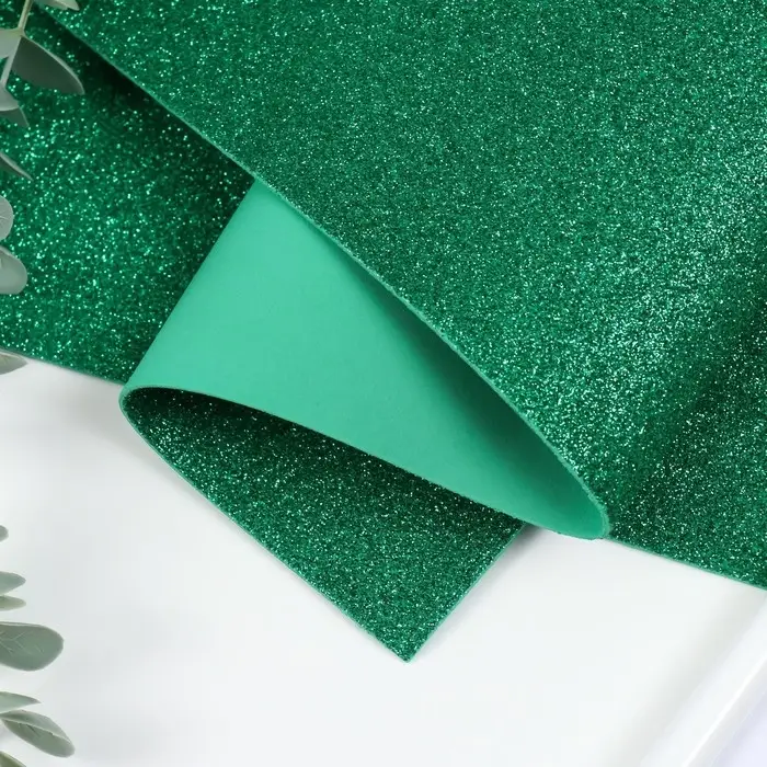 Фоамиран глиттерный 2 мм, 50х50 см, зелёный