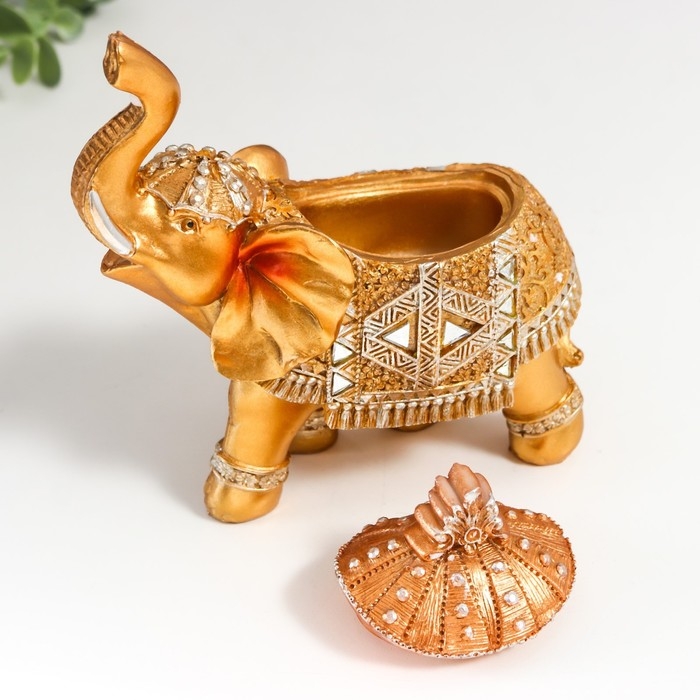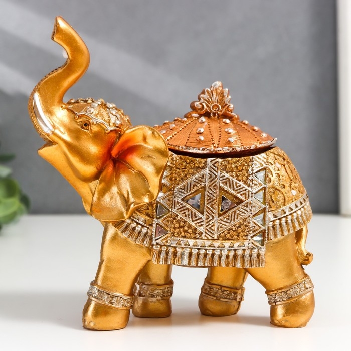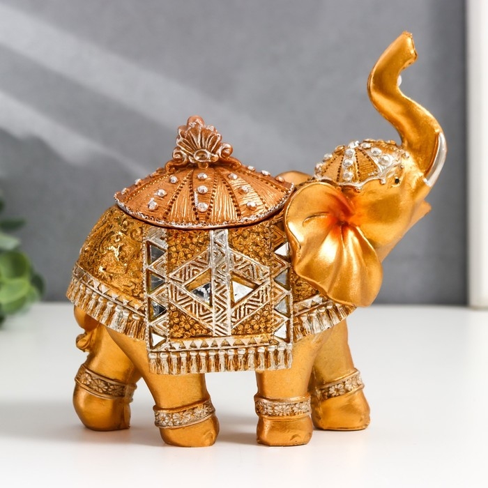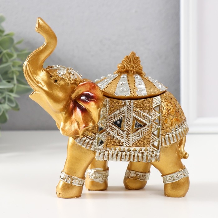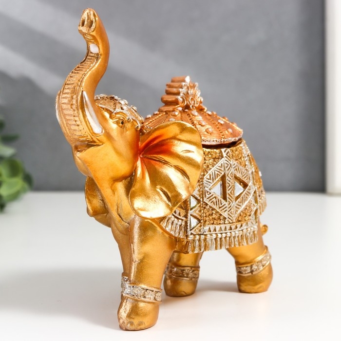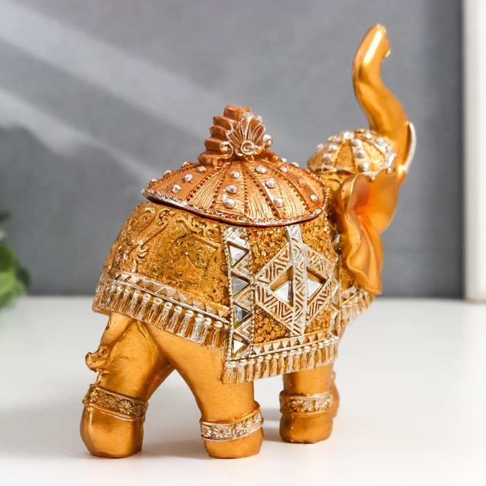 Шкатулка полистоун "Золотой слон в зеркальной попоне" 15х13,7х6,5 см