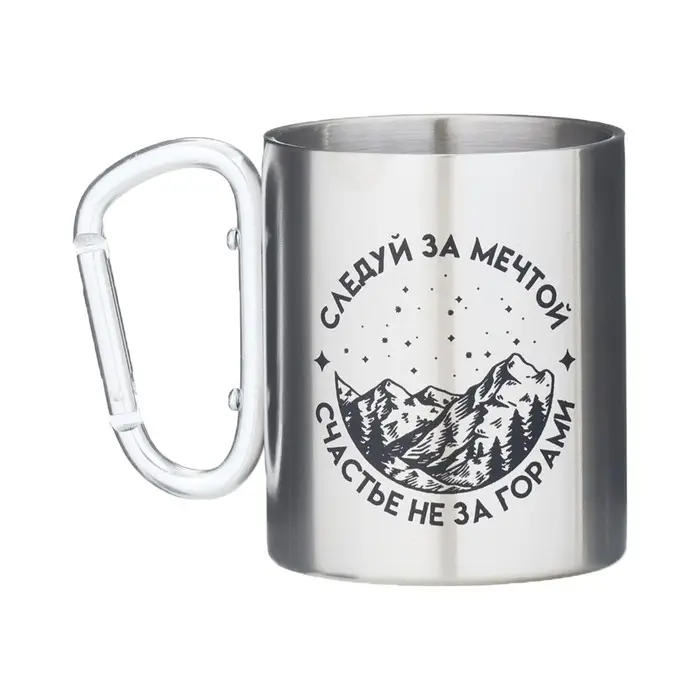 Термокружка является незаменимым атрибутом для всех любителей активного отдыха. Благодаря термокружке напитки остывают медленнее, чем в обычной чашке или картонном стаканчике. Классическая модель термо кружки выполнена из нержавеющей стали, которая не взаимодействует с содержимым и не меняет его состава, запаха или вкуса. Металлические элементы обладают высокой прочностью и легко моются: достаточно промыть изделие с помощью неагрессивного моющего средства. Кружка легко пристегивается за карабин к поясу или к лямке на рюкзаке. Благодаря компактным размерам и эргономичному дизайну, она легко помещается в сумку или рюкзак, что делает ее идеальным выбором для путешествий, прогулок и активного образа жизни. Термокружка станет идеальным подарком мужу, папе, брату или другу на День Рождения, Новый год или любой другой праздник.