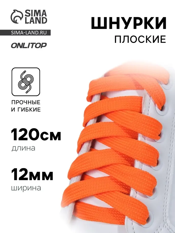 Шнурки для обуви, пара, плоские, 12 мм, 120 см, оранжевые, неоновые