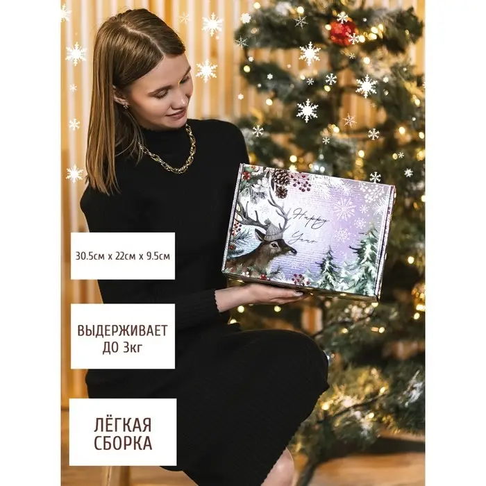 Коробка подарочная новогодняя складная «Happy New Year», 30,5 х 22 х 9,5 см, Новый год