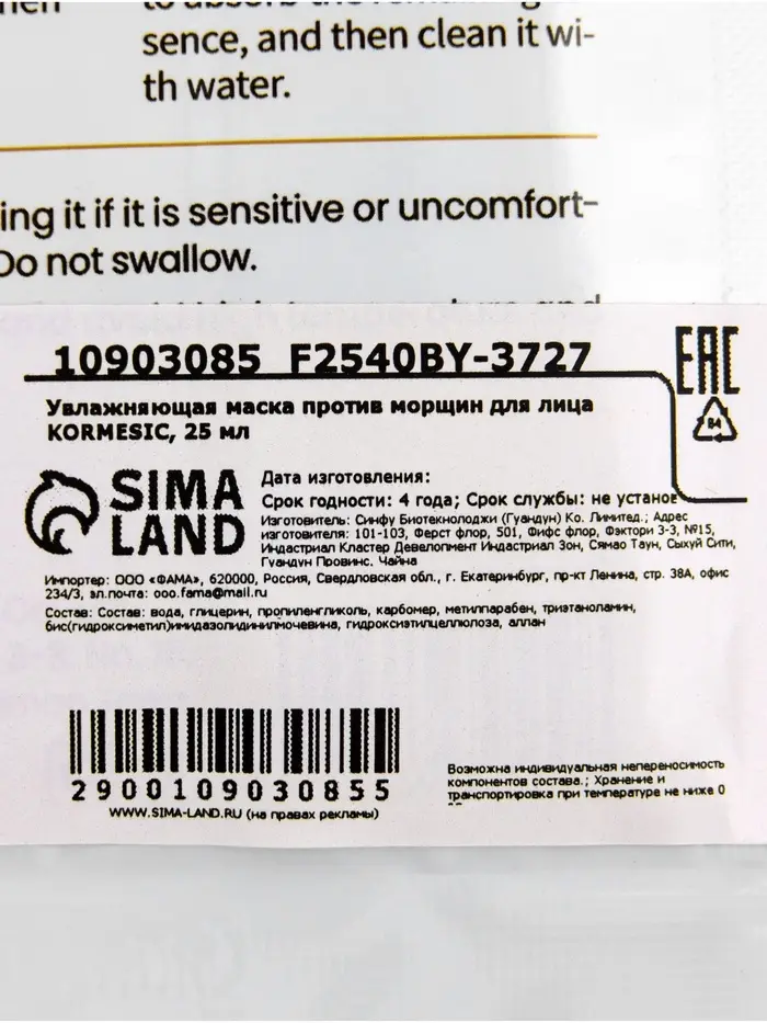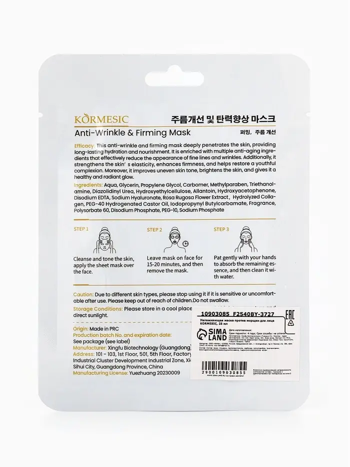 Увлажняющая маска против морщин для лица KORMESIC, 25 мл