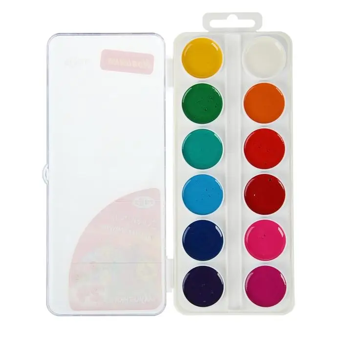 Краски акварельные, в кюветах, с кистью, 12 цветов
