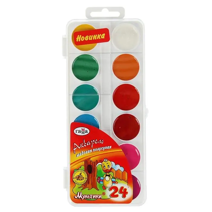 Акварель 24 цвета, «Гамма» «Мультики», без кисти, в пластиковой коробке
