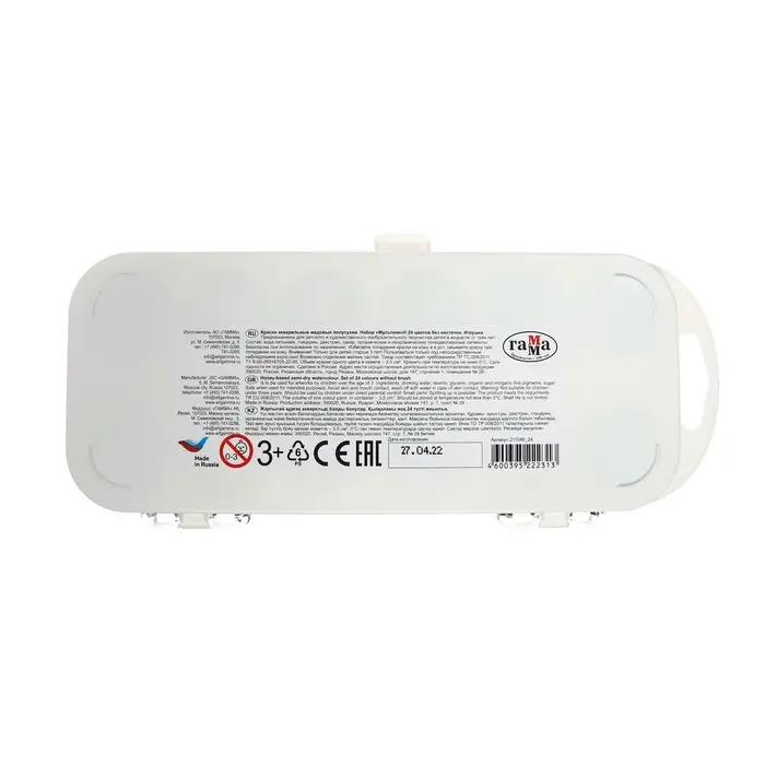 - Удобный пластиковый пенал, крышка плотно фиксируется и служит палитрой для смешивания красок.