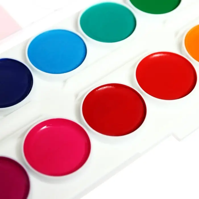 - Кюветы с высокими бортиками и увеличенным расстоянием между красками предназначены для удобства в работе детей.