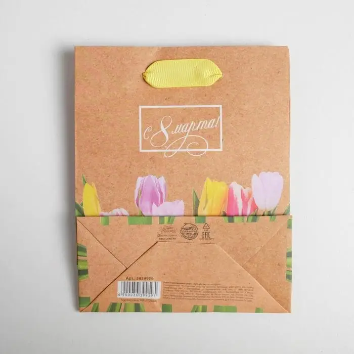 Пакет подарочный вертикальный крафтовый, упаковка, «Цветочная вереница», S 12 х 15 х 5.5 см