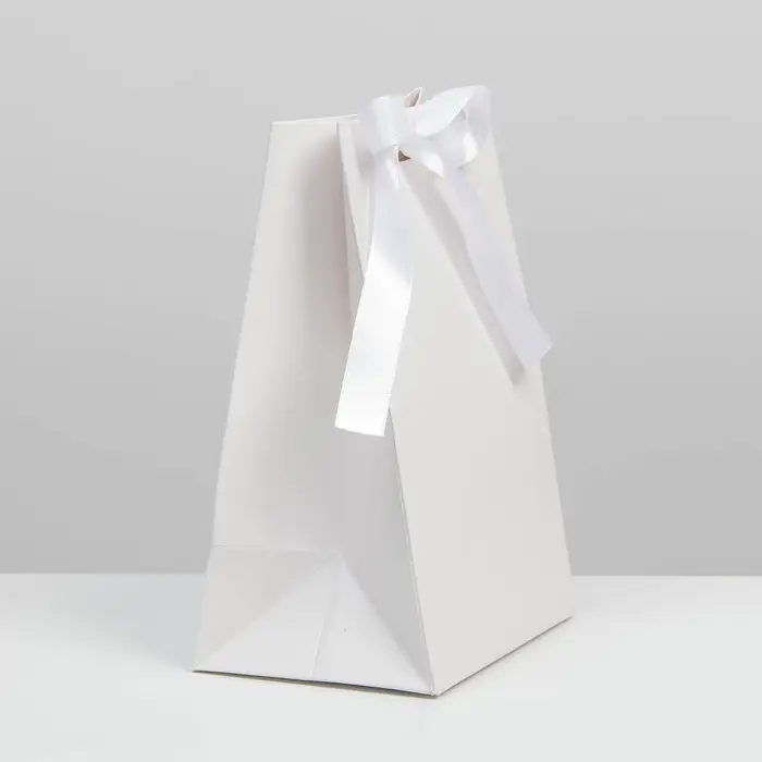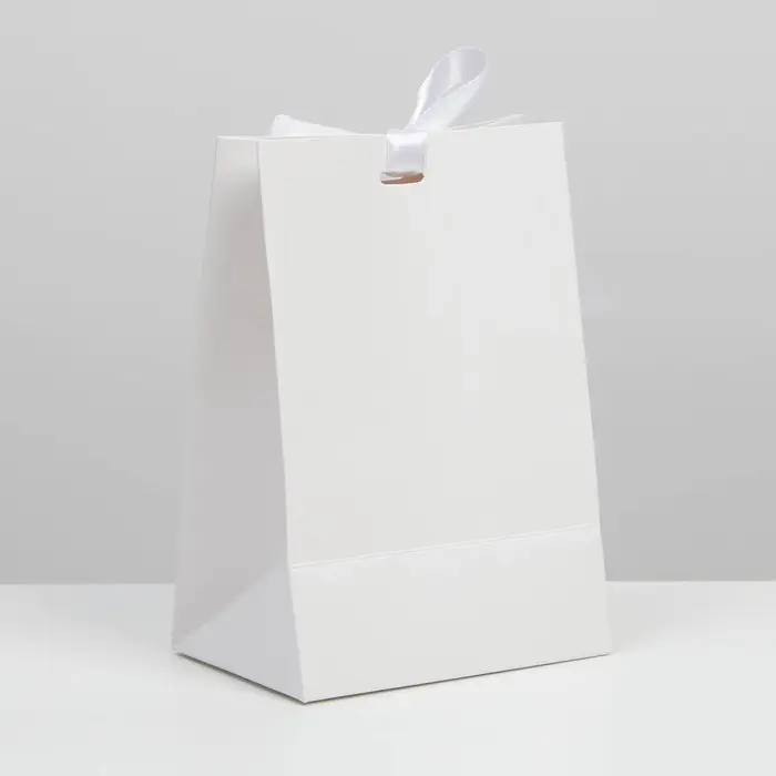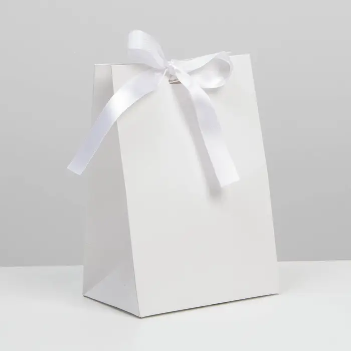 Пакет подарочный с лентой, упаковка, «Белый», 13 х 19 х 9 см