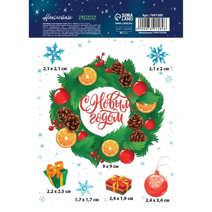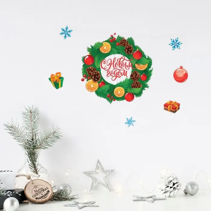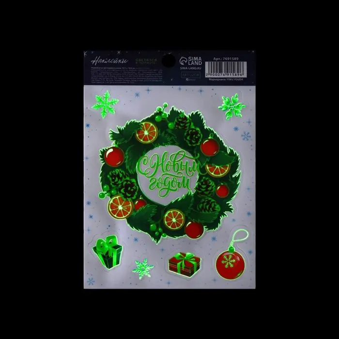Наклейки новогодние со светящимся слоем «Новогодний венок», 10.5 х 14.8 см