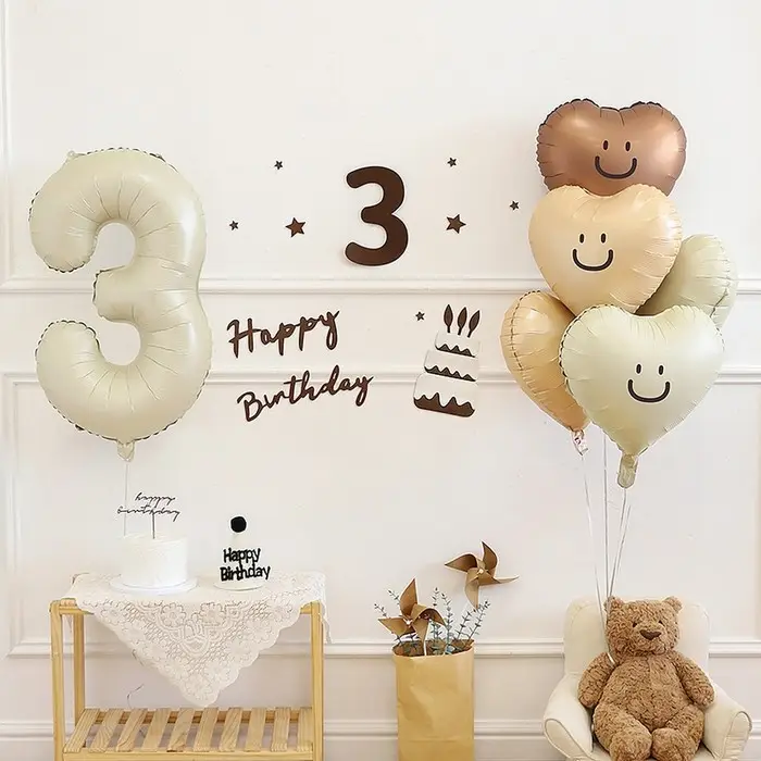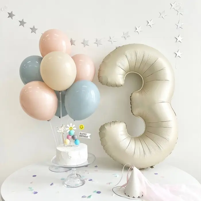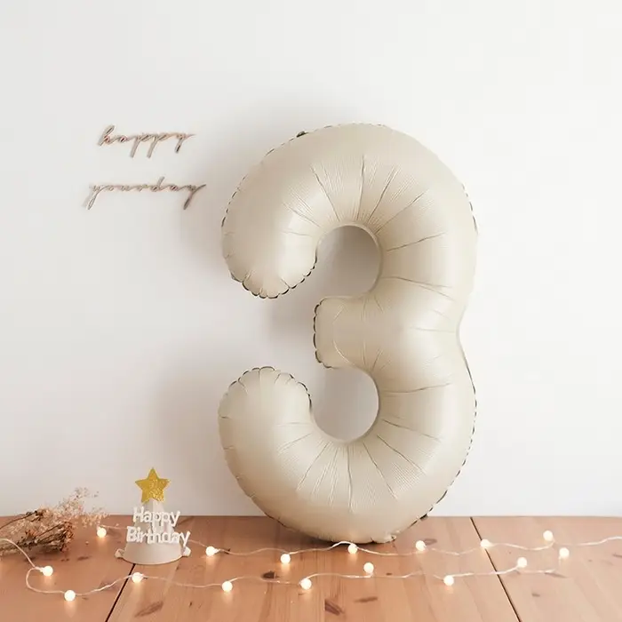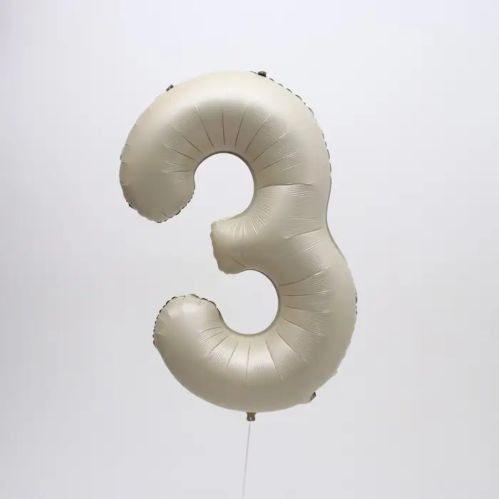 Шар фольгированный 40" Цифра 3, цвет «Взбитые сливки»