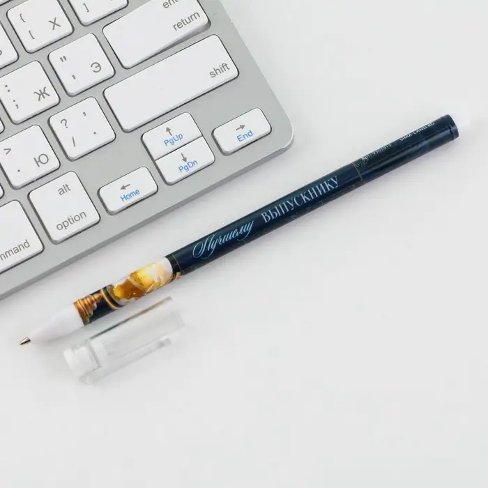 Ручка с колпачком и нанесением soft-touch «Любимому учителю», синяя паста 0.7 мм
