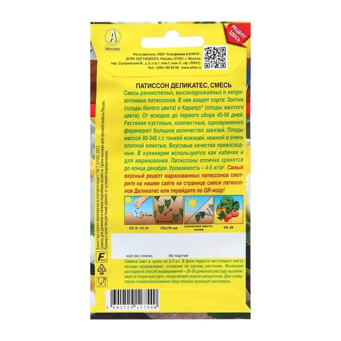 Семена Патиссон Деликатес, смесь Блюда стран мира Ц/П 1г