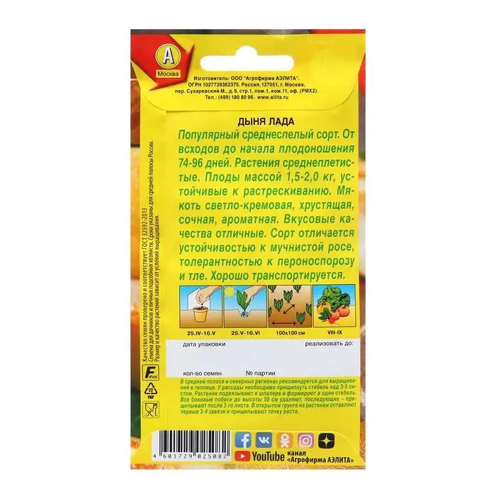 "Семена Дыня Лада являются одним из самых популярных сортов дыни на российском рынке. Этот сорт отличается высокой урожайностью, отличным вкусом и устойчивостью к неблагоприятным погодным условиям.