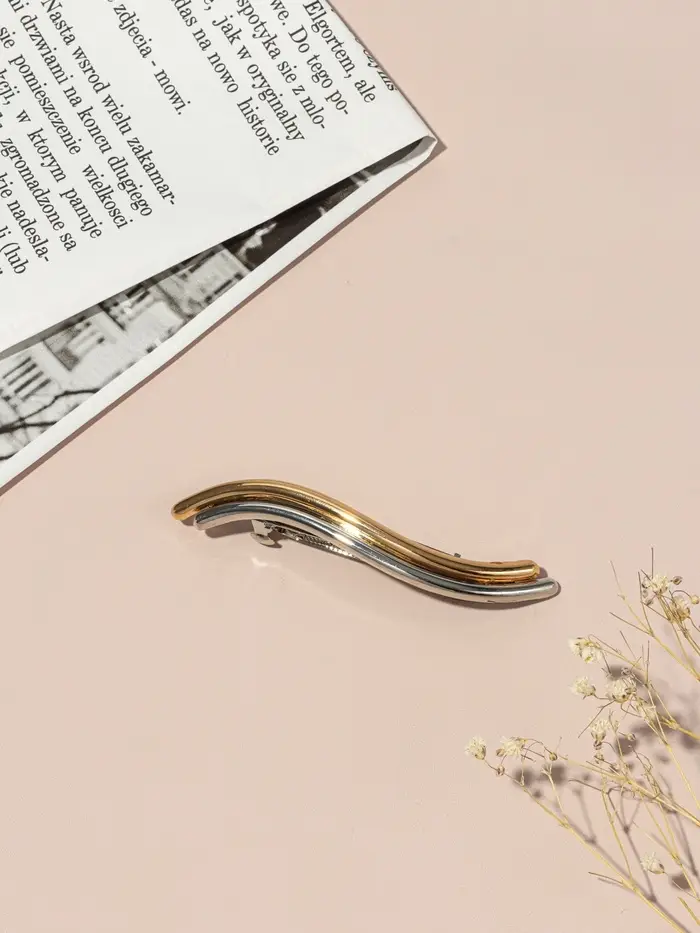 Заколка-автомат для волос "Андри" волна, 8,5 см, серебристо-золотой