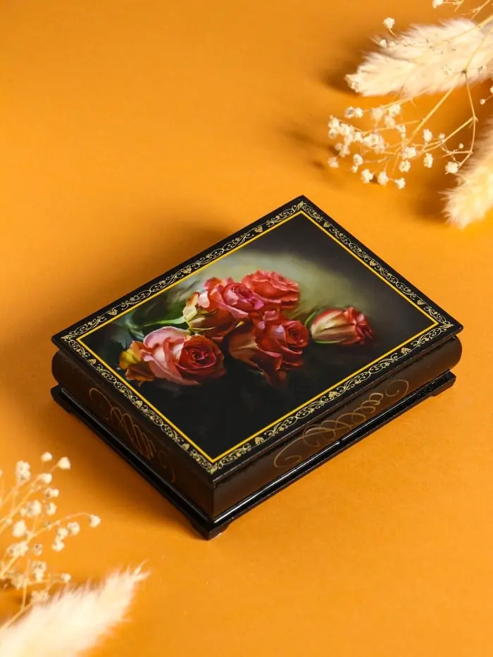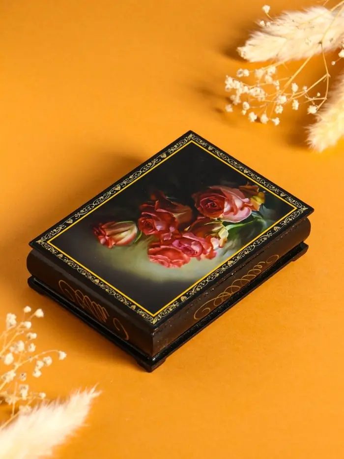 Шкатулка «Розы», 10×14 см, лаковая миниатюра