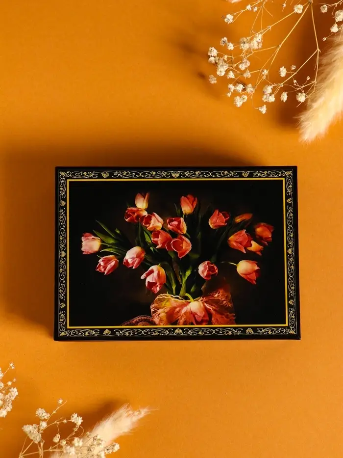 Шкатулка «Тюльпаны», 10×14 см, лаковая миниатюра