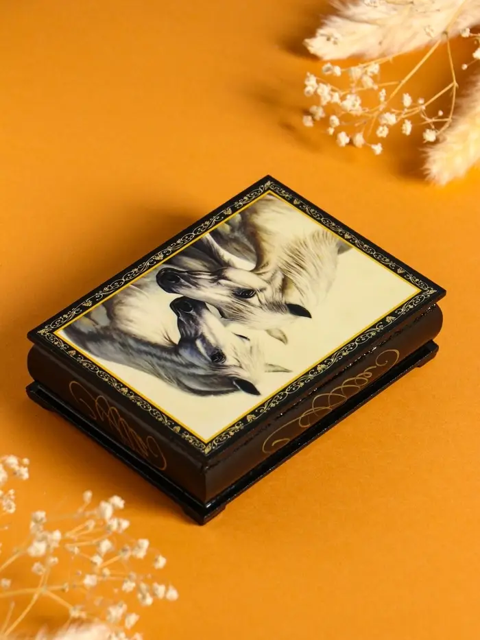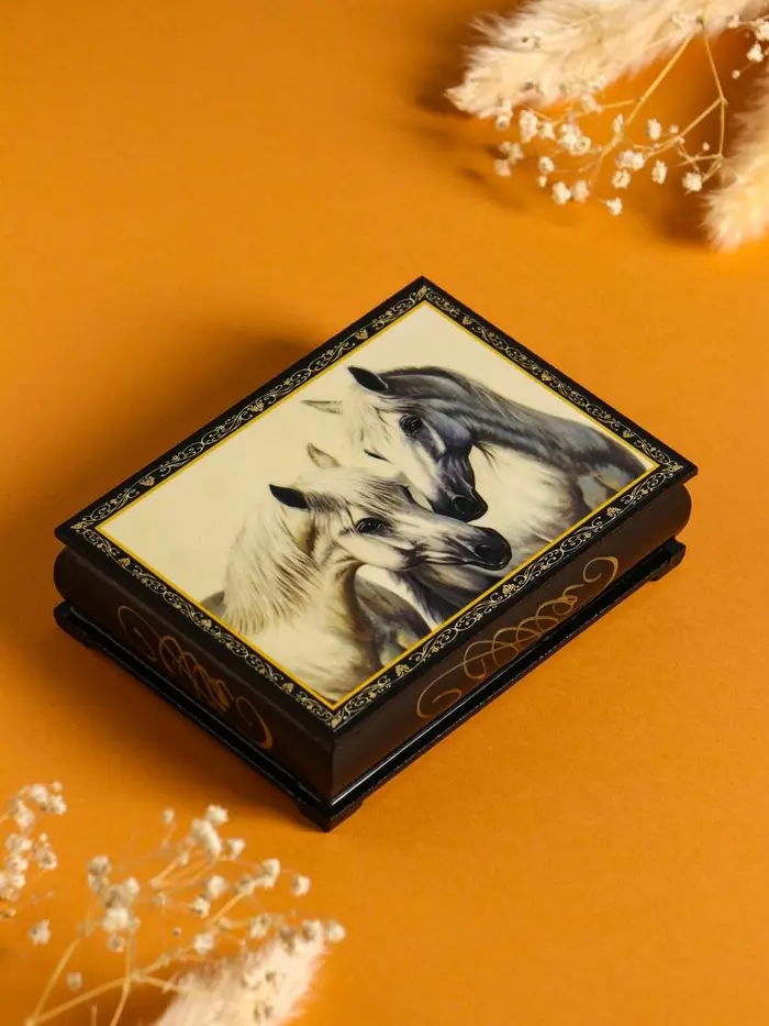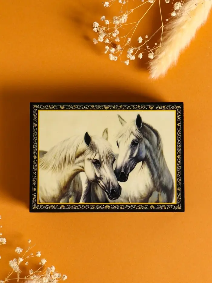 Шкатулка «Пара белых лошадей», 10×14 см, лаковая миниатюра
