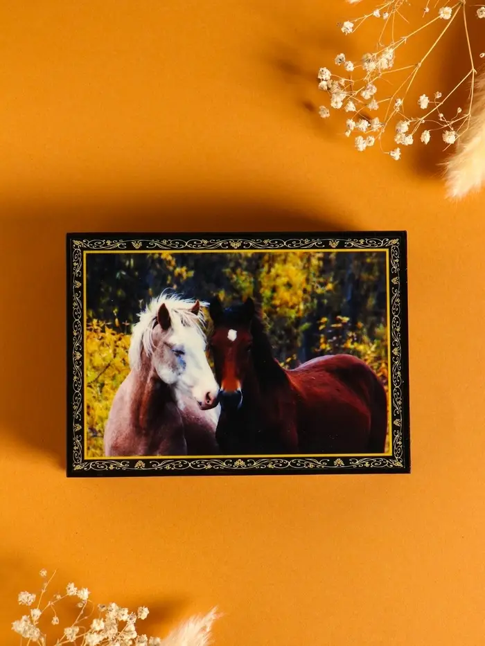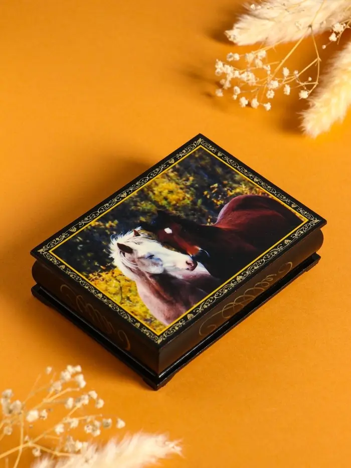 Шкатулка «Пара лошадей», 10×14 см, лаковая миниатюра