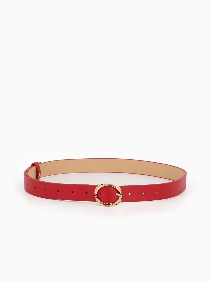 Ремень жен 05-01-01-01, Июнь2510, 2,9*0,3*110 см, без винта, пряж золото, 1 прокол, красный 109031