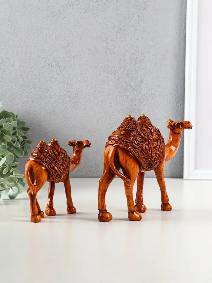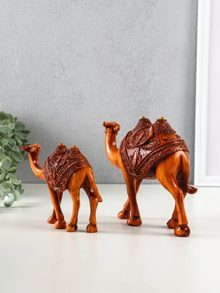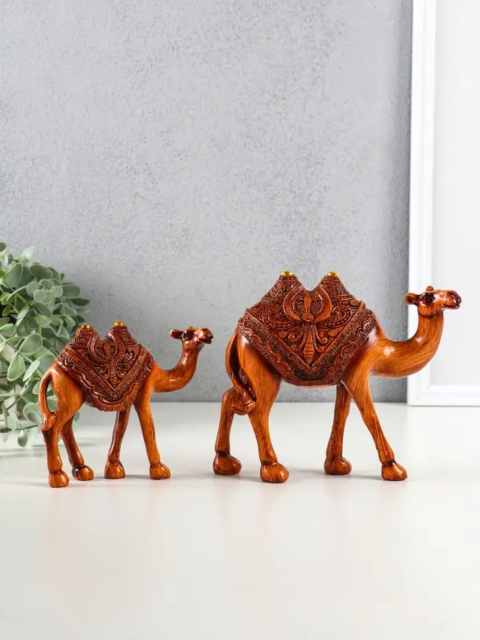 Сувенир полистоун "Двугорбые верблюды" под дерево набор 2 шт 14х4,5х12,5 16,5х5,5х14,5 см